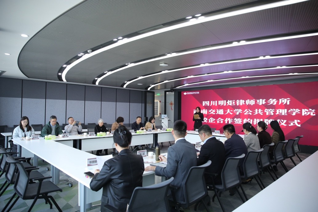 王宗旗在致辞中表示,明炬律师事务所自1996年成立、2013年重组以来,始终坚持“打造本土规模所、做精业务、做大品牌、践行职业使命”的发展理念,持续推进规模化、专业化与国际化建设。此次与西南交通大学公共管理学院建立校企合作关系,是明炬在青年法律人才培养和法治实践体系建设中的又一重要举措,对于推动法学教育与实务深度融合具有重要意义。